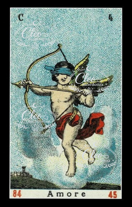 • Sibilla Indovina: Mostra o Cupido puxando seu arco, acompanhado por um par de pombas brancas voando livremente, simbolizando paz e união,.